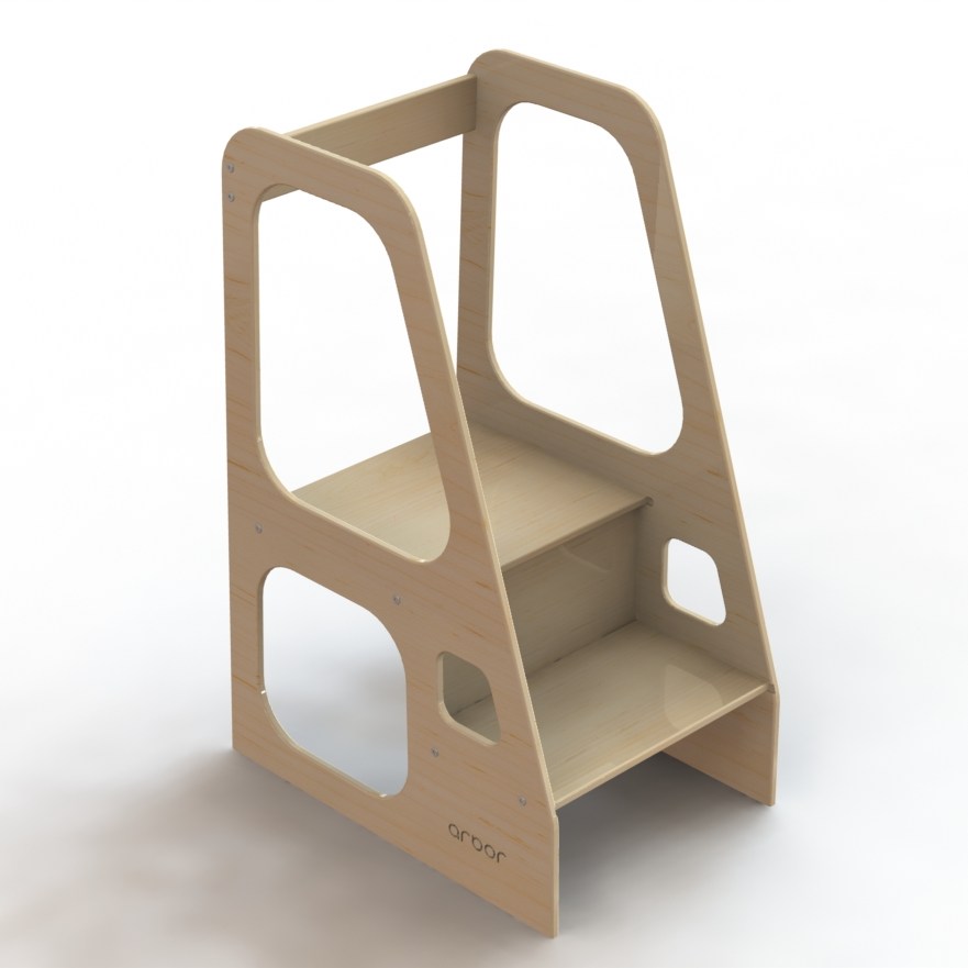 Designed for a very special little lady in my life. The step stool offers a perfect perch for a toddler to join in the kitchen countertop action while providing an aesthetically appealing piece of furniture.